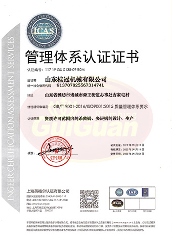 山東桂冠機(jī)械有限公司成立于2008年,注冊資金1600萬元,現(xiàn)有員工200多人,中高級技術(shù)管理人員45人,占地面積27000多平方米,生產(chǎn)車間面積12000多平方米。公司具備壓力容器產(chǎn)品的設(shè)計、制造(證書編號為:TS2237703-2025)、壓力管道安裝(證書編號為TS3837607-2025)全套壓力容器資質(zhì);通過國家ISO9001質(zhì)量管理體系認(rèn)證、美國ASME認(rèn)證、歐盟CE認(rèn)證;擁有建筑安裝機(jī)電工程專業(yè)承包叁級資質(zhì)、建筑工程施工總承包叁級資質(zhì)及對外貿(mào)易經(jīng)營出口權(quán)…